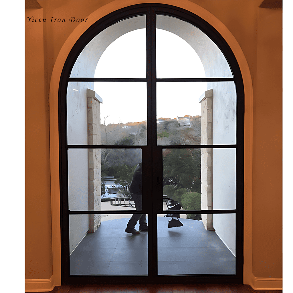 Yicen Luxury Arch Top Wrought Iron Doors | Custom Glass Designs